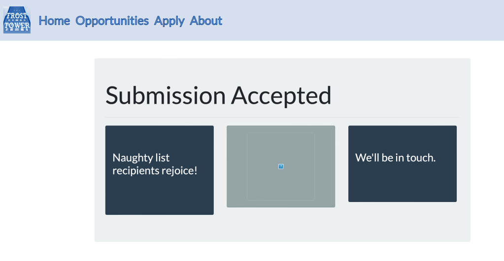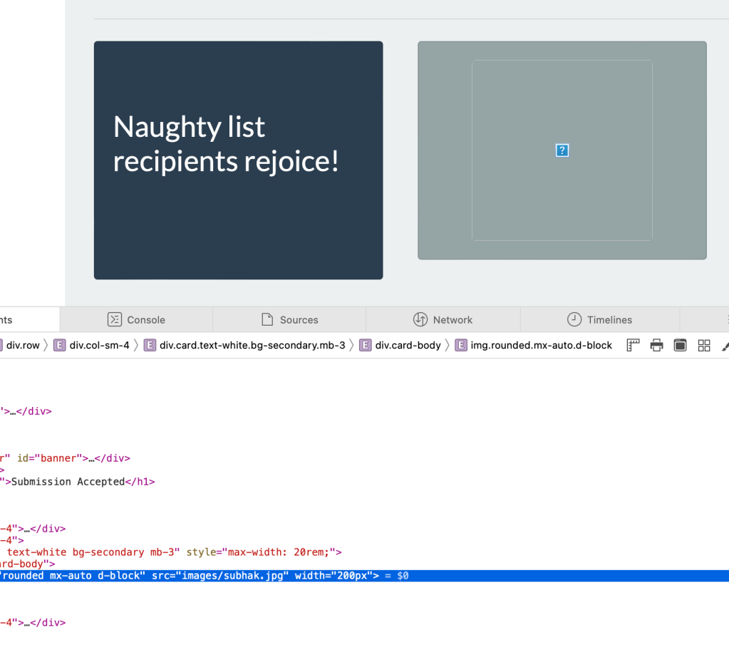 Well nothing special, except the image in the middle that cannot be displayed. When inspecting this image element, I found that it is named with the name we put in the form (sunhak in this case), which is nice to keep in mind.