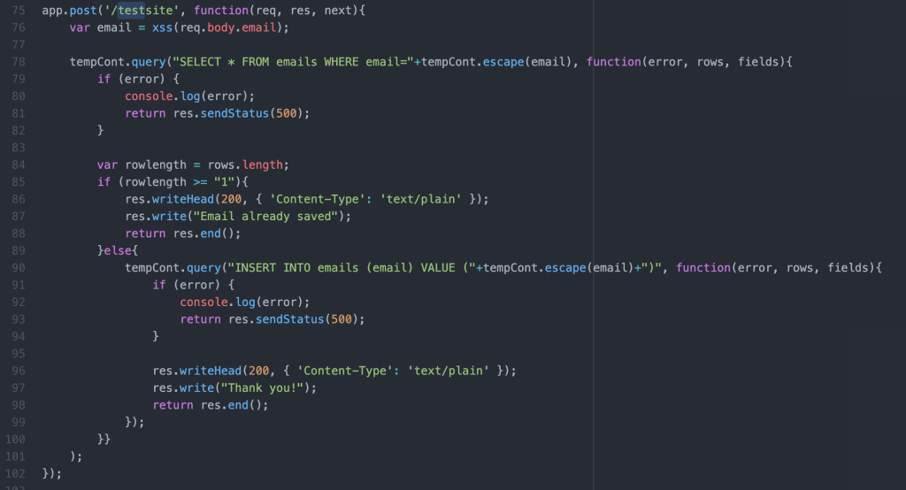 Let’s start by checking the code handling the POST request when submitting an email using the main page.