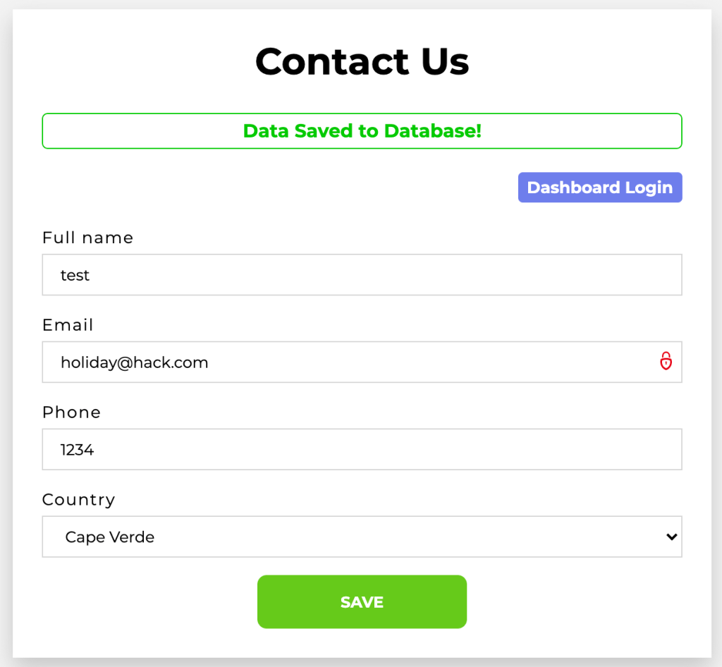 So in order to bypass the session check we need no to add the same email two times! let’s do it. We put the URL /contact